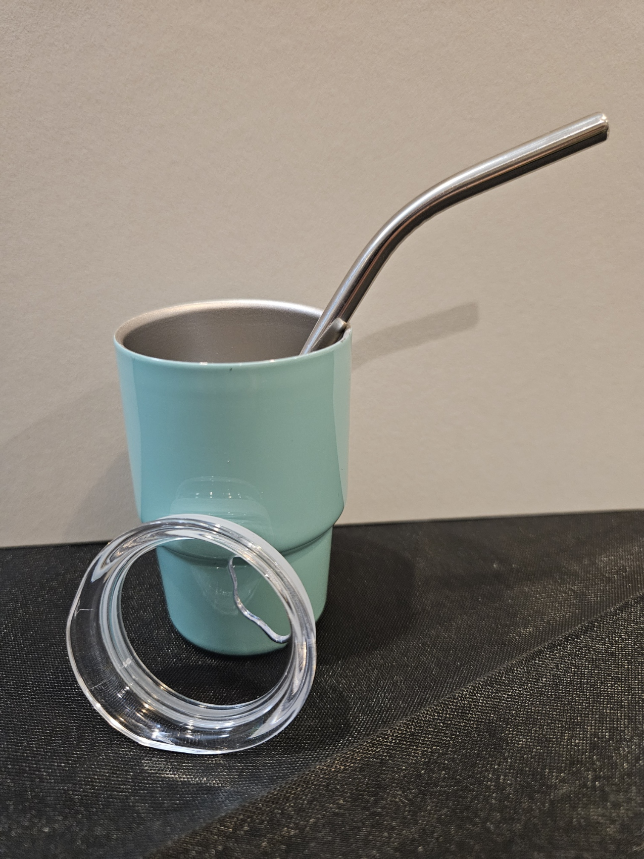 Comes with a plastic lid and metal straw